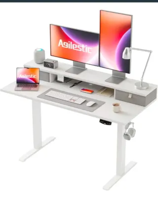 ¡Síguenos en nuestro IG @elemercadocircular para ver todos los productos que nos van llegando! ¡Para estrenar! Escritorio Agilestic elevable + L ergonómico. Si se compra con envío debe ser a domicilio. - *Motor eléctrico 72-116cm*: Silencioso (<55dB) + 2 memorias. - *Diseño L + FSC*: Amplio + madera certificada + esquinas. - *Sólido + duradero*: Acero + 80kg + 50k pruebas. - *2 cajones tela*: Guarda + orden + limpio. - *Práctico diario*: Ganchos + gestión cables + anticolisión 2,5cm. D0123