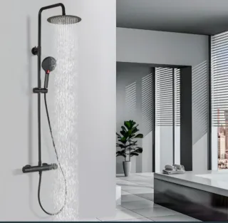 ¡Siguenos en nuestro IG @elmercadocircular para ver todos los productos que nos van llegando! Nueva Conjunto de ducha termostática de acero inoxidable en acabado negro mate, con bloqueo de seguridad a 38 °C. Incluye rociador efecto lluvia XXL de 25 cm, ducha de mano con 3 funciones y barra regulable en altura. Sistema antical, alto rendimiento incluso con alta presión y manguera flexible anti-torsión. Instalación sencilla sin taladro conexiones universales. Ideal para disfrutar de una experiencia tipo spa en casa. D0085