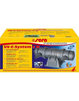 sera - Sistema UVC, 5 W, un aclarador de Agua UVC de Alto Rendimiento contra el Agua Verde Dimensiones del dispositivo sin boquilla: 320 x 130 x 110 (largo x ancho x alto) Conexiones con diámetro: 15/20/25 mm Circulación recomendada: 500 l/h Para acuarios de hasta 500 litros Conexión de alimentación: 220-240 V/50 Hz con TÜV & GS