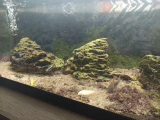 Acuario de gran tamaño, 100 litros ideal para mantener peces y plantas acuáticas. Con calentador termómetro plantas artificiales el filtro se a averiado por eso la vendo . La vendo según está todavía quedan dos peces . podría cambiar por voladero para pájaros