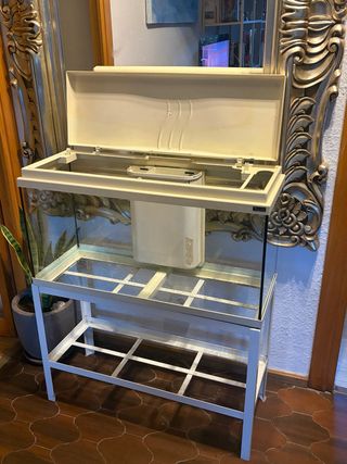 Acuario de 100 litros. - Estructura blanca. - Acristalamiento transparente.