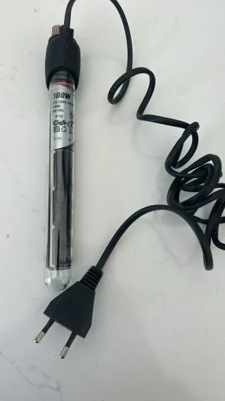 un calentador de acuario 100W a estrenar, para peceras y acuarios de hasta 100 litros. Mide 23.5cm de largo es perfecto para acuarios pequeños/medianos, se puede poner en horizontal o diagonal porque lleva 2 ventosas. Tiene termostato para regular la temperatura y luz suave naranja de encendido. Hago envios por Correos a toda España incluido Canarias (cuesta solo 3€ el envio) o compralo con Wallapop Envios, que protege tu pago y te permite devolver el producto con 100% de rembolso incl. gastos envio