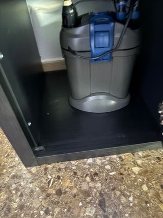 Acuario de aproximadamente 90 o 100 litros, con su mueble y filtro. - Mueble de madera con puertas. - Filtro externo Eheim ecco pro 300 mas uno interior (para mover el agua) Eheim también. Regalo pequeño gambario, ambas urnas tienen sistema de filtrado, calentador nuevo y una bomba de oxigeno, ademas de piedras volcanicas y dragon. El filtro externo tiene 4 meses de uso y me costó mas de 160€ Regalo el mueble y una bolsa de piedra fina para decoración. Tengo otro acuario prácticamente nuevo, si quieres los dos mas el gambario lo dejariamos en 300, el afiario nuevo tiene inquilinos como escalares, barbos, coridoras y alguno mas.