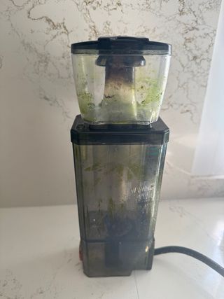 Skimmer interno QQ2 para acuarios, diseñado para un uso eficiente y compacto. - Diseño compacto. - Bajo consumo energético. - Recomendado para acuarios de hasta 100 litros (26.4 galones). - Incluye bomba de skimmer profesional Bubble-magus ROCK SP600. - Dimensiones: 100mm (largo) x 78mm (ancho) x 305mm (alto).
