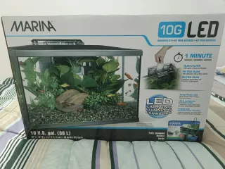Acuario de 38 litros de la marca Marina, perfecto para tu hogar. Incluye iluminación LED. - Capacidad: 10 galones (38 L). - Medidas: 20 x 10 x 12.5 (51.3 cm x 26 cm x 32.8 cm). - Iluminación LED de bajo consumo. - Sin filtro