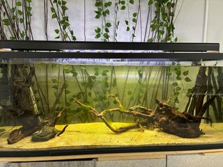 Acuario de 300 litros en perfecto estado, listo para dar vida a tu hogar. - Incluye abundante vegetación. - Diseño espacioso para un ecosistema vibrante.