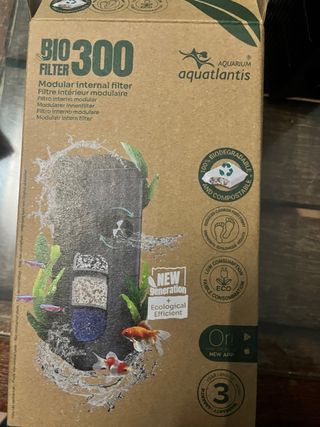 Filtro interno modular para acuarios de hasta 50 litros. Es un modelo New Generation y Ecological Efficient. - Modelo: BIO 300 - Marca: Aquatlantis - Tipo: Filtro interno modular - Ecológico y de bajo consumo - 3 años de garantía -Cuesta 21€ en kiwoko y en kiwoko puedes comprar los recambios