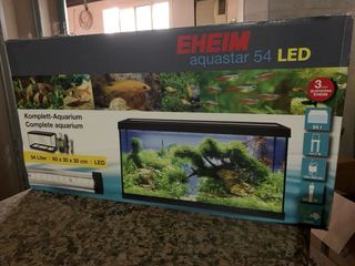 Acuario completo Eheim Aquastar 54 LED. Incluye casi todo lo necesario para empezar. - Capacidad: 54 Litros. - Dimensiones: 60 x 30 x 30 cm. - Iluminación LED. - Bomba de agua: 150-300 l/h. - Potencia: 50 W.