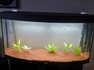 Acuario de gran tamaño con su mueble. -Con programación de luz diurna y nocturna - Fondo azul. - Con bombonas de CO2 - Marca Sera Contactar a: 642929546