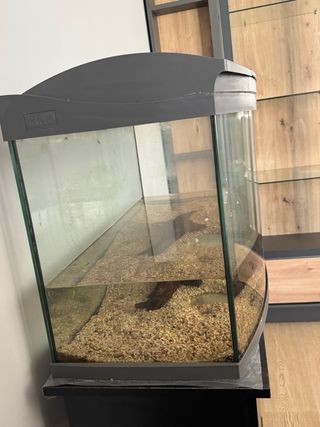Después de muchos años de afición por los peces y muy a nuestro pesar lo ponemos en venta, debido a la mudanza. Acuario listo para usar, con todo lo necesario para tus peces. Aireador de aire uno instalado y otro a batería, limpiacristales, redes, paridera, canutillos y tierra de sobra, dispensador de comida automático( 12/24hrs) los botes de comida a la mitad. Tiras de medir agua. El único pero es una bomba que se partió el cable. Algún mañoso que sepa soldarlo. Por lo demás todo genial. Se entrega montado y en mano. Posibilidad de mueble. Gracias Guppys, alevines guppys, caracoles Helena, coridora, Pleco y plantas naturales.