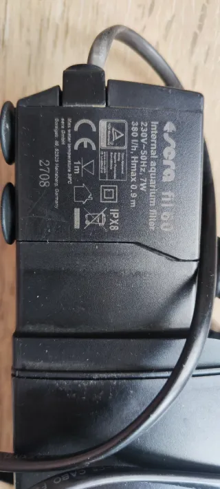 Filtro interno para acuarios de la marca Sera. - Modelo: Sera fil 60 - Potencia: 7W - Caudal: 380 l/h - Altura máxima: 0.9 m - Voltaje: 230V-50Hz - Protección IPX8 - Fabricado en Alemania