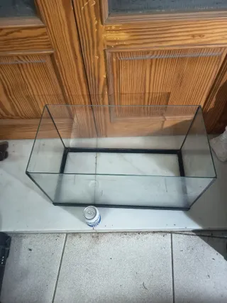 Pecera de cristal en perfecto estado con capacidad de 40 litros y su tapadera con un hueco para filtro de cascada u otros accesorios. La tapadera es de metacrilato para más fácil manejo y seguridad. - Dimensiones: 50cm largo x30cm ancho x30cm alto. - Ideal para acuarios, gambarios, terrarios... Las manchitas que se ven son del propio agua o del uso y se puede limpiar. Se vende por cambio de pecera.