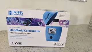 Colorímetro portátil Hanna Instruments HI772 Checker HC para medir la alcalinidad en acuarios de agua salada. Incluye el dispositivo, un estuche, una batería y un vial. Solo usadon1 vez - Modelo: HI772 Checker HC - Medición: Alcalinidad (dKH) - Uso: Acuarios de agua salada - Incluye estuche de transporte