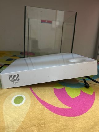 Acuario compacto con iluminación LED integrada. - Diseño moderno y elegante. - Ideal para pequeños espacios. Incluye filtro de oxigeno, comida y líquidos Solo Hay que darle un repaso y queda como nueva