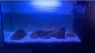 Vendo acuario completo en funcionamiento. Armario de acero forrado en madera blanca. Iluminación led. Dos filtros exteriores Turbojet JT3388 de 1164 l/h. Espectacular fondo rocoso ideal para ciclidos africanos.