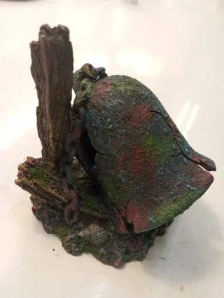 ¡Dale un toque natural y realista a tu mascota! Vendo tronco decorativo de resina de alta calidad, ideal para acuarios, terrarios de reptiles o pequeños roedores. Tiene un acabado muy detallado que imita la corteza real con toques de musgo verde. Diseño funcional: Cuenta con varias aperturas (entradas y salidas) para que los peces o reptiles puedan esconderse y reducir el estrés. Material seguro: Resina no tóxica, no altera el pH del agua y es muy fácil de limpiar. Estado: En perfecto estado, sin grietas ni desperfectos Largo: 16 - 17 cm Ancho: 10 - 11 cm Alto: 7 - 8 cm #terrario #escondite #acuario #troncodecorativo