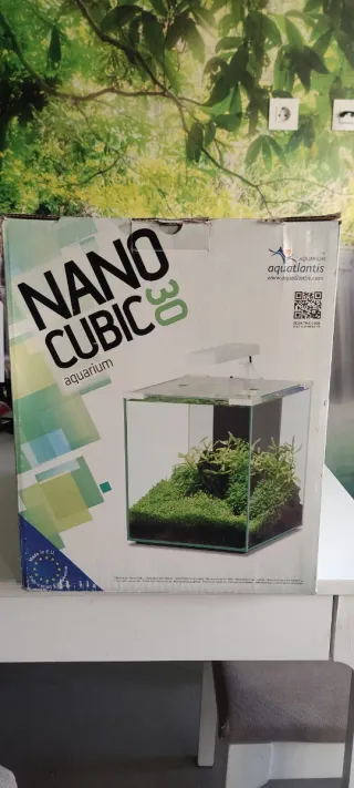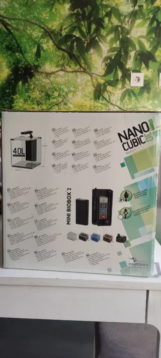 Vendo acuario Nano Cubic 30 de 40 litros + luz led + termostato + filtro Mini biobox2, ideal para aquascaping o gambarios. Su tamaño compacto es perfecto para cualquier espacio. El pack incluye: Filtro Mini Biobox: Con cargas filtrantes (fibra, carbón activo, esponja gruesa y aquaclay). Pantalla LED: Iluminación eficiente de bajo consumo. Termostato: Calentador regulable incluido. Manuales y Caja original: Para un transporte seguro. Urna de 40L: Con tapa de cristal. Únicamente posee un pequeño desperfecto en la esquina pero no afecta en nada a su funcionamiento ni a la seguridad, ya que es solo la cubierta.