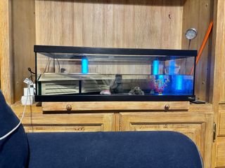 Vendo acuario y terrario para tus mascotas. Medidas: alto; 77cm ancho : 56cm largo : 1,51 cm 500 L También cambiaría por algo de mi interés. Lo doy con todo lo siguiente : 2 calentadores de agua. bombilla de calor para reptiles. graba para plantas. filtro. luces. tapa con respiración. troncos tratados. liana. Todo listo para el mejor ambiente de tus mascotas.