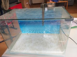 Acuario pequeño, ideal para principiantes. Está en muy buen estado y es perfecto para decorar cualquier espacio. - Incluye materil de limpieza y mantenimiento: red, nitratos y nitritos, antialgas, regulador de PH.... - Tiene grava negra en la base. - Contiene un puente decorativo, una roca y un tronco de madera. - Dispone de filtro, luz con mando a distancia y calentador con termometro.