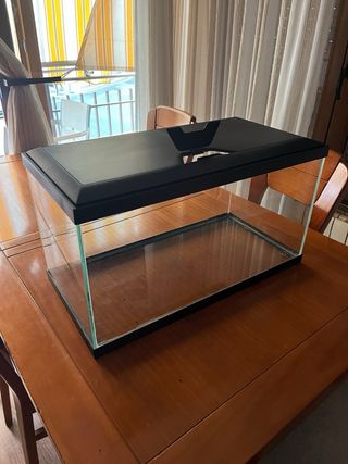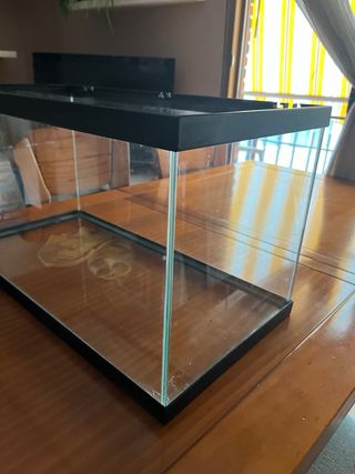 Acuario de cristal con marco y tapa superior. - Marco negro. - Tapa superior negra.