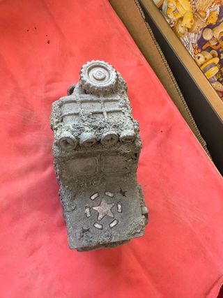 Preciosa figura decorativa para acuario con forma de coche, ideal para darle un toque único a tu pecera. Es de piedra y tiene un diseño muy original. - Diseño de coche todoterreno. - Acabado en piedra con textura rugosa. - Detalle de estrella en el capó.