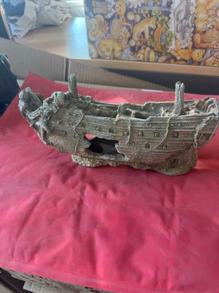Precioso barco hundido para decorar tu acuario. Es de plástico y presenta un aspecto antiguo y detallado. - Ideal para acuarios de agua dulce o salada. - Diseño realista de barco naufragado. - Perfecto para crear un ambiente submarino único.