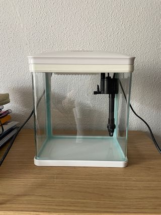 Acuario o pecera de la marca Nobleza con capacidad de 7 litros en perfecto estado. Incluye un filtro y oxigenador integrado para mantener el agua limpia. Funciona perfectamente tanto el filtro/oxigenador y la luz. - Diseño moderno y compacto. - Ideal para pequeños peces o gambas.