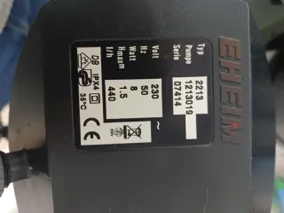 Filtro externo Eheim Classic 250, modelo 2213. - Tipo: 2213 - Caudal: 440 l/h - Altura máxima: 1.5 m - Potencia: 8 W - Voltaje: 230 V - Frecuencia: 50 Hz - Protección: IPX4 - Temperatura máxima: 35°C Se incluyen llaves dobles, 4 metros de manguera, tubos de entrada y salida. El filtro se entrega hasta arriba de material biológico. Se entrega limpio y engrasado. Se ha desmontado del acuario esta semana. Listo para funcionar.