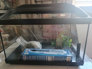 Acuario, ideal para principiantes. Está en perfectas condiciones, listo para usarse. - Capacidad: 5 litros aproximadamente. - Incluye artículos de decoración, piedras.