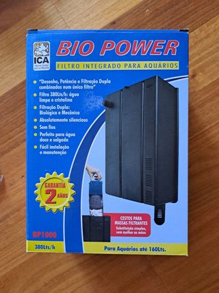 Acuario 100l comprado en el año 2021 con luz led intregrada / Filtro integrado 300l/h BIO POWER / Filtro interno 400l/h OPTIMUS / Oxigenador acuario VENTO 1 / Termocalentador 100W TEMPERAMATIC PRO / Sifonador / Limpiador grava y agua eléctrico DC 12V SAFER / Algodón de filtrado 75gr (paquete de 100gr abierto) / Adornos: puente y tronco natural/ Comida para peces