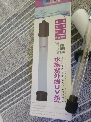 Lámpara esterilizadora UV para acuarios de 13W. Ayuda a mantener el agua limpia y libre de bacterias y algas. - Potencia: 13W - Tipo: UV esterilizador - Uso: Acuario/pecera - Nueva a estrenar - Precio algo negociable