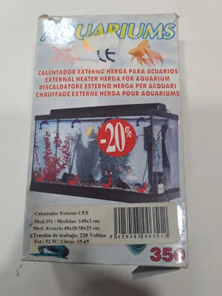 Se vende acuario de 40 litros junto con un calentador Fluval P50 de 50W. - Calentador apto para acuarios de hasta 50 litros. - Calentador con protección contra roturas (Shatter Proof). - Calentador preajustado a 25°C.
