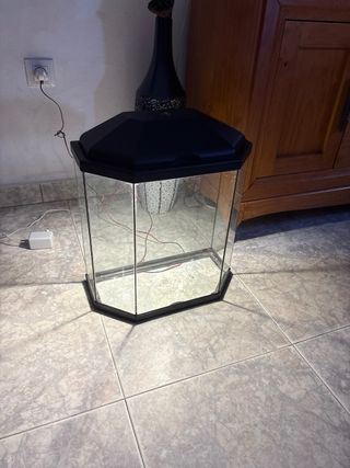 Acuario hexagonal perfecto para principiantes. Está en buenas condiciones y listo para usarse. - Capacidad para principiantes. - Forma hexagonal. - Cristal transparente. -Tapa incluida -Luz incluida sin grietas medidas aproximadas 50x30x30cm (alto x ancho x fondo)