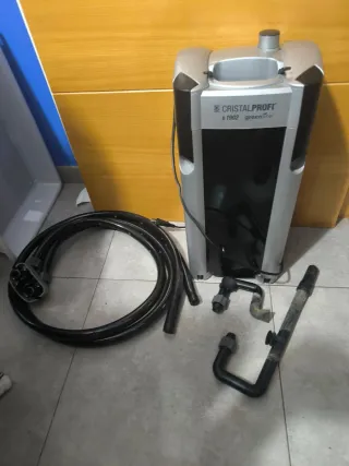 Filtro externo para acuarios JBL CristalProfi e1902 Greenline. Incluye mangueras y accesorios. - Modelo: CristalProfi e1902 Greenline. - Color: Plateado y negro. - Incluye manguera negra. - Accesorios de conexión. Tórica principal de la cabeza al vaso nueva y conexión de las mangueras al filtro también nueva.