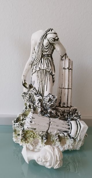 Pez de resina para decoración de acuarios. Se conecta a la bomba de aire y al salir las burbujas se le abre y cierra la boca.