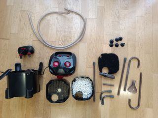 Filtro de cascada para acuario, prácticamente nuevo. Ideal para mantener el agua limpia y cristalina. 550L/h - Fácil instalación. - Diseño compacto y eficiente. - Vacio de material filtrante, solo los canastos y la esponja que se ve en las fotos -Posibilidad de instalar luz UV de 5V