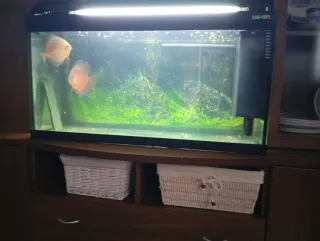 Se vende acuario con mueble incluido , vale para peces de agua fria como de agua caliente ,filtros , decoracion , calentador de agua . Negociable el precio chollo