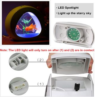 Acuario de 4 litros con iluminación LED integrada. Un espacio moderno para tus peces. - Diseño circular con ventana frontal. - Iluminación LED para realzar el ambiente.