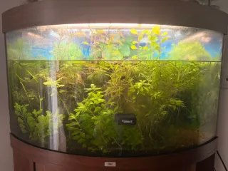 Acuario de esquina JUWEL Trigon 190 L con mueble – Equipamiento completo Vendo acuario de esquina JUWEL Trigon de 190 litros, ideal para acuarios de agua dulce y perfectamente integrado en esquina. Dimensiones: Medidas acuario: 98,5 x 70 x 70 cm Altura: 60 cm. Medidas mesa: 98,5 x 70 x 70 cm Altura: 73 cm. Incluye: • Mueble/mesa original JUWEL • Filtro externo Eheim Classic 2213 (250) • Filtro UV para control de algas (conectado al sistema de filtrado, lo puedes desconectar cuando quieras) • Aireador • Iluminación por tubos fluorescentes • Plantas naturales incluidas (se entregan al vaciar el acuario) No envíos,gente seria