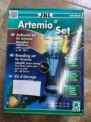 Kit de cría JBL Artemio Set para nauplios de Artemia. Permite obtener alimento vivo en 24-48 horas. - Incluye todo lo necesario para la cría. - Ideal para acuarios de agua dulce y salada. - Instrucciones en varios idiomas.