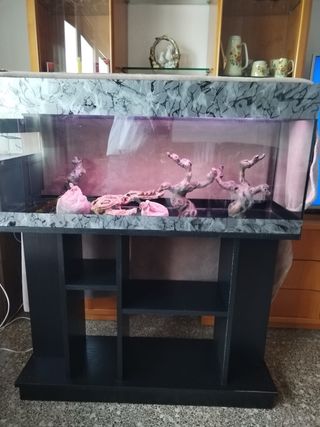 Acuario con mueble y detalles