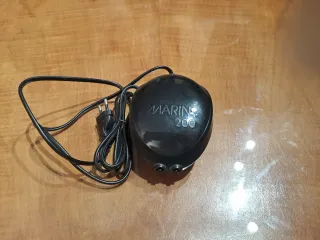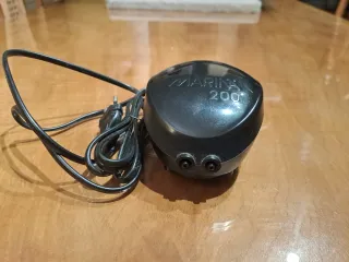 Bomba de aire para acuario de la marca Marina, modelo 200. Es un dispositivo compacto y negro. - Modelo: Marina 200 - Color: Negro - Diseño ovalado Tiene 2 salidas . Ideal para mantener el oxígeno en el acuario. Tambien cambio por coridoras, gambas o ancistrus.