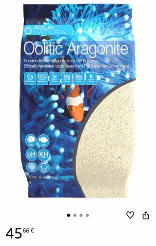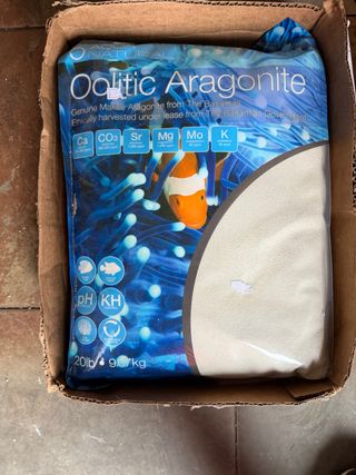 Arena Oolitic Aragonite de 20 libras (9.07 kg) para acuarios marinos. - Precio en tienda 45€ aqui 25€. - Genuine Marine Aragonite from The Bahamas. - Ethically harvested under lease from The Bahamian Government. - Contiene Calcio (Ca), Carbonato (CO3), Estroncio (Sr), Magnesio (Mg), Molibdeno (Mo) y Potasio (K). - Ayuda al control del pH y KH.