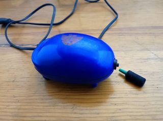 Se vende bomba de oxígeno para acuario Maxika. Es de color azul oscuro y tiene un botón amarillo. - Ideal para acuarios. - Marca Maxika. - Diseño compacto. Va dentro de un armario con tapa en la parte de abajo para guardar cosas