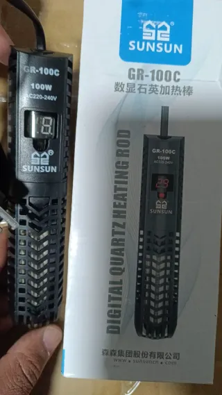 Calentador para acuario con pantalla digital de temperatura. - Potencia de 100W. - Marca Sunsun.