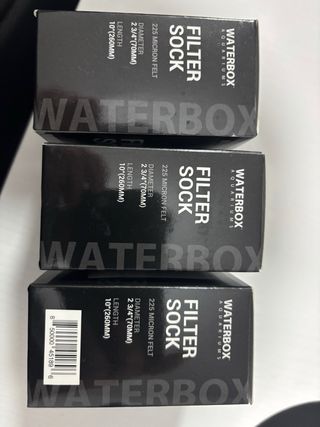 Se venden tres filtros para acuario de la marca Waterbox. - Diámetro: 2 3/4 (70mm) - Longitud: 10 (260mm) - Material: 225 micras felt