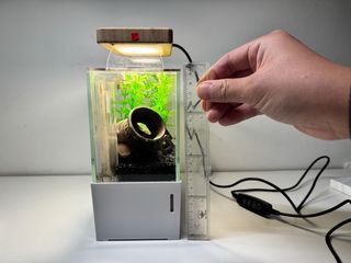 Acuario de 20 litros con un diseño moderno y elegante. Perfecto para crear un pequeño ecosistema en casa. - Capacidad de 20 litros. - Iluminación LED RGB integrada. - Filtro de agua eficiente. - Alimentador automático - Calentador Se puede controlar y gestionar a través de la aplicación móvil. Luz programable y multicolor. Alimentador automático y completamente programable. Muy sencillo de utilizar y en perfecto estado.