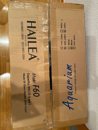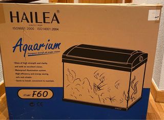 Acuario HAILEA modelo F60 con capacidad de 60 litros. Diseñado para ofrecer una visión clara y completa. - Fabricado con vidrio de alta resistencia y claridad. - Sistema de iluminación impermeable. - Alta eficiencia y ahorro de energía. - Rápido de instalar y cómodo de mantener.