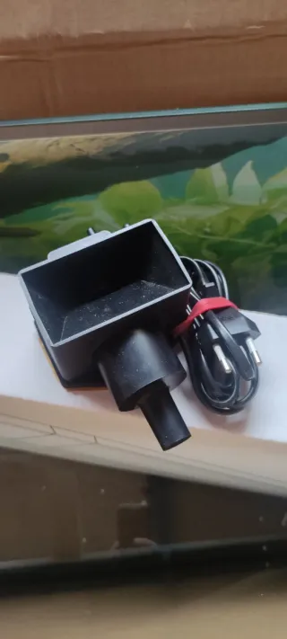Pequeña bomba de aire para acuario, viene con la piedra difusora de aire para crear una cortina de burbujas que oxigenan el agua. El enchufe es un cable tipo USB. Están nuevos, sin uso ninguno, ya que al ponerlos en el acuario no me gustó como quedaban, ya que se me veía el cable por atrás por qué yo no tengo fondo en el acuario ni nada. El cable USB mida 90cm y la goma transparente del difusor otros 90cm. Son dos bombas una en blanco y otra en negro, una sola 5€, las dos 9€.