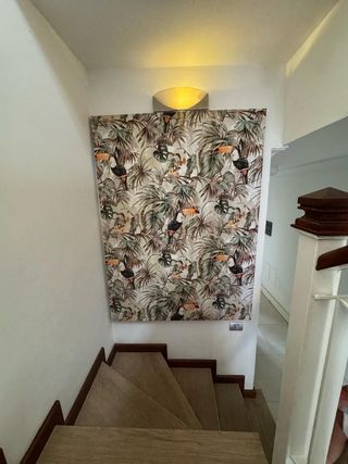 Preciosa pieza decorativa para tu hogar. Es un cuadro de tejido, de gran tamaño y con un diseño tropical muy original. - Diseño con estampado de tucanes y hojas tropicales. - Perfecto para añadir un toque de naturaleza a cualquier espacio.